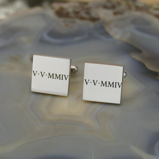 Personalised Roman Numeral Cufflinks – Custom Date Wedding Cufflinks in Stainless Steel by Apsley & Heron