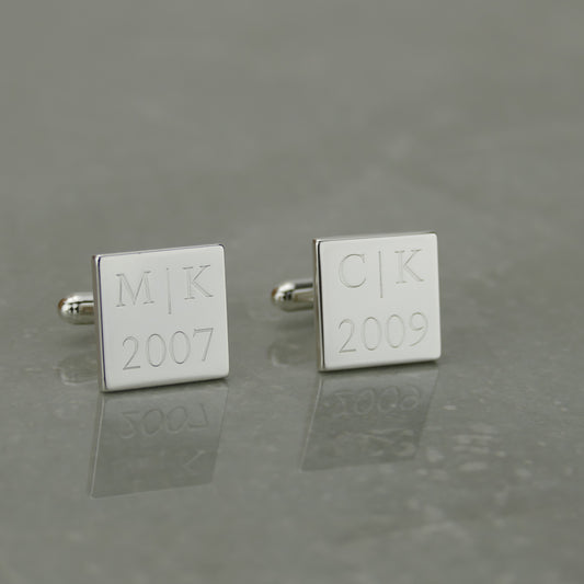 Personalised Sterling Silver Cufflinks – Engraved Year & Initials by Apsley & Heron