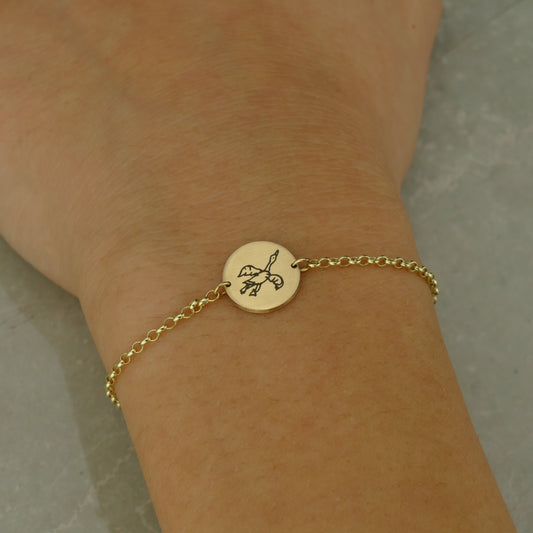 9ct Gold Personalised Drawing Bracelet – Custom Engraved Keepsake by Apsley and Heron