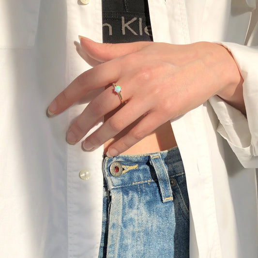 Blue Opal Stackable Ring – Sterling Silver October Round Birthstone by Apsley and Heron