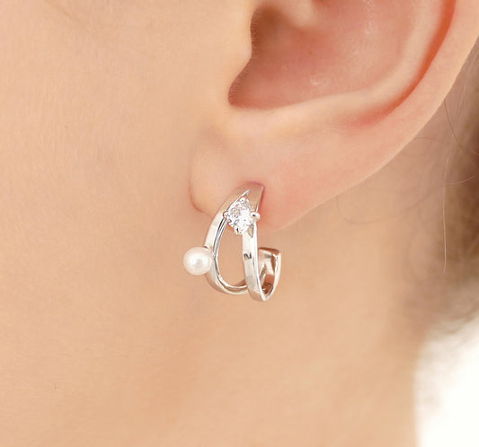 Silver Pearl/Cubic Zirconia Tear Earrings