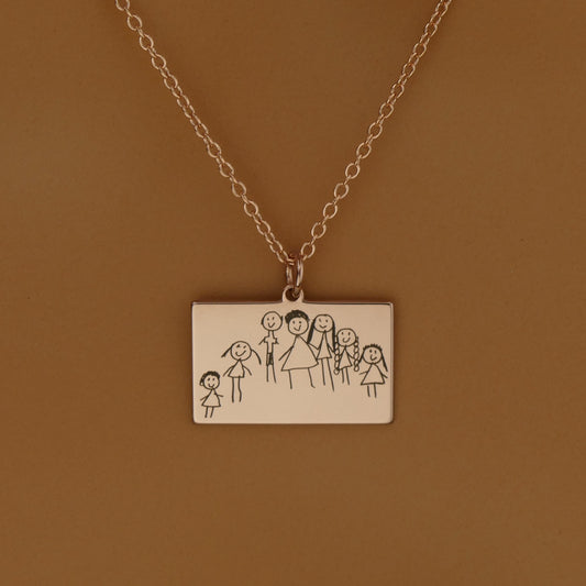 Personalised Kids Drawing Necklace – Sterling Silver Rectangular Pendant by Apsley and Heron