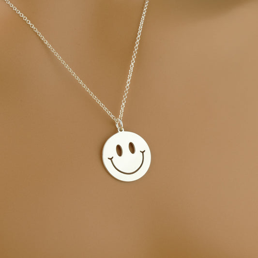 Smiley Face Necklace – Sterling Silver Pendant in Gold & Rose Gold by Apsley and Heron