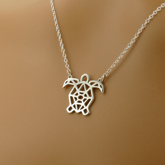 Geometric Turtle Necklace – Sterling Silver Animal Pendant by Apsley and Heron