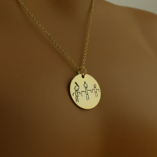 Personalised Kids Drawing Necklace – Custom Engraved Pendant in 925 Sterling Silver by Apsley and Heron