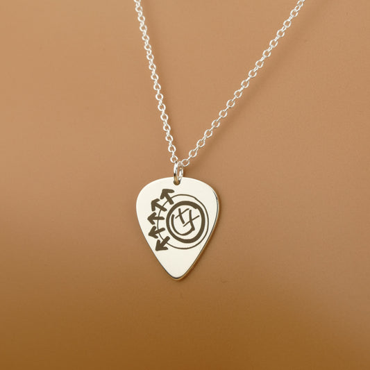 Personalised Handwriting Plectrum Necklace – Sterling Silver Custom Engraved Pendant by Apsley and Heron