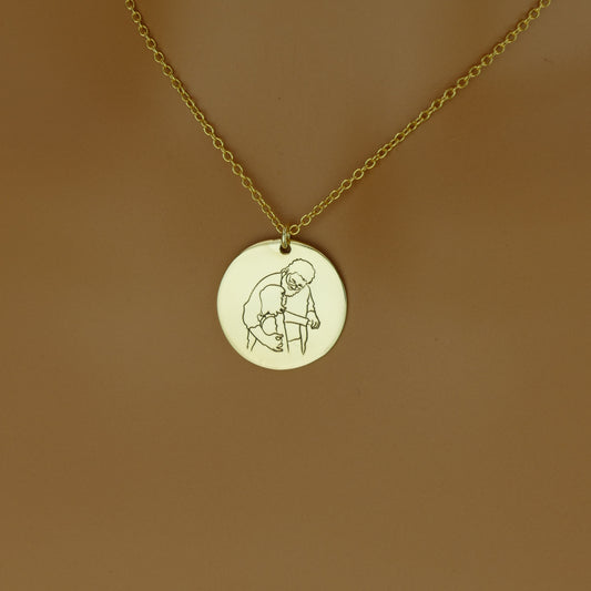 Personalised Line Art Photo Necklace – 925 Sterling Silver Engraved Pendant by Apsley and Heron